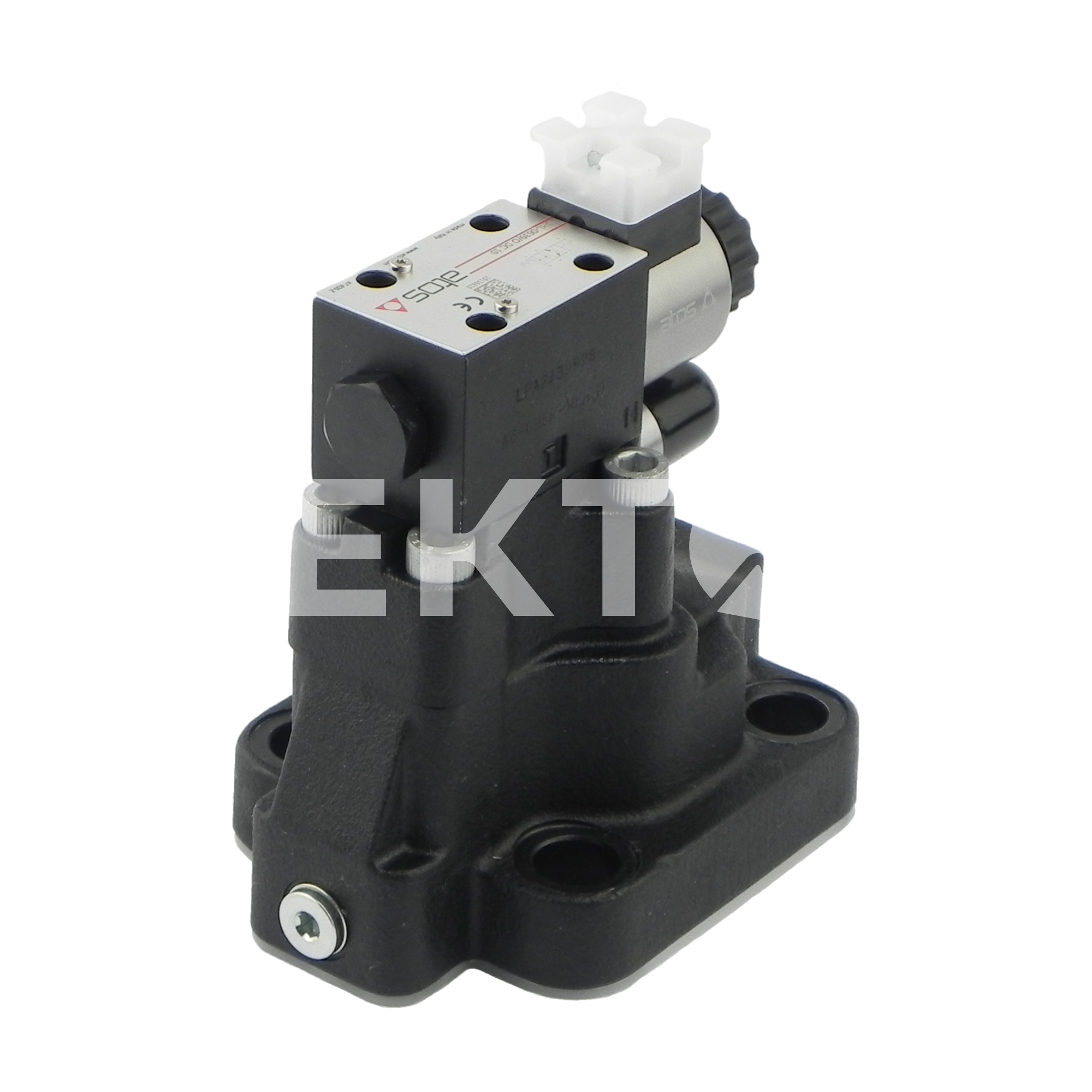 Zawór przelewowy dwustopniowy AGAM-32/10/350-LX 24DC został zaprojektowany do montażu płytowego (wielkość: NG32). W tej wersji zawór ma jedną nastawę ciśnienia otwarcia, które można wyregulować za pomocą śruby: obrót w prawo podnosi ciśnienie otwarcia zaworu. Ponadto zawór został wyposażony w zawór pilotowy sterowany cewką 24 VDC, który służy do upuszczania oleju.